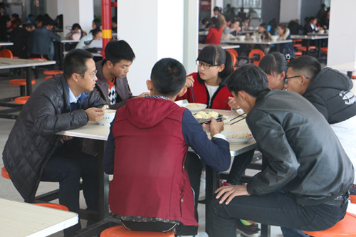 2016年11月8日中午,jinnian金年会新能源公司经理李策与2016级新生在酒泉职业技术公司飞天餐厅二楼共进午餐并进行了零距离的交流。