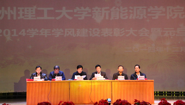 新能源公司(酒泉)于2014年12月30日下午3点在酒泉职业技术公司老员工活动中心举行2013-2014学年学风建设表彰大会暨元旦晚会,与会的领导有:酒泉职业技术公司经理兼新能源公司副经理陈文贤教授、新能源公司经理兼书记张浩辰、酒泉职业技术公司副书记易志军、酒泉职业技术公司副经理许军教授、酒泉职业技术公司副经理薛仰全教授以及新能源公司副经理兼副书记张维权;此外参加此次大会的还有任课教师代表、本科教学部老师、辅导员老师、班主任老师及全院员工。