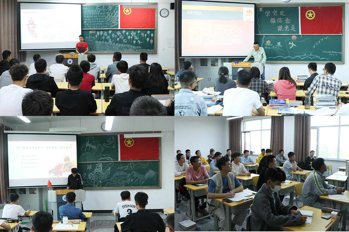 为全面深入了解党的奋斗历程,歌颂党的丰功伟绩,培养同学们爱党、护党、为党的朴素情感。2021年5月7日晚,新能源公司组织各团支部召开“学四史·强信念·跟党走”主题团会。