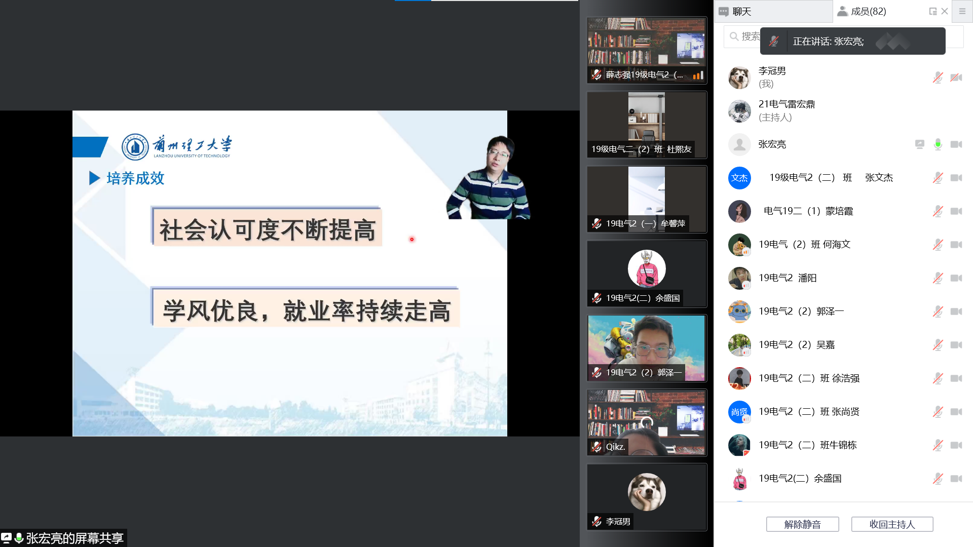 张宏亮副教授在线上围绕认知我的大学、认知我的专业、学好我的专业三大方面并结合社会发展前景,从电气专业介绍、人才培养目标、要求、课程、就业、考研等多方面对同学们进行了详细介绍。同时,提醒同学们要尽快适应生活环境、学习环境以及人际关系环境,制定好学业规划,积极参加自身专业相关的各类比赛,确定人生方向,提高自身素养,明确学习的重要性,做好员工的本职工作。讲座过程中同学们认真听讲,积极与老师交流互动,思考提出自己问题,老师为同学们一一解答。