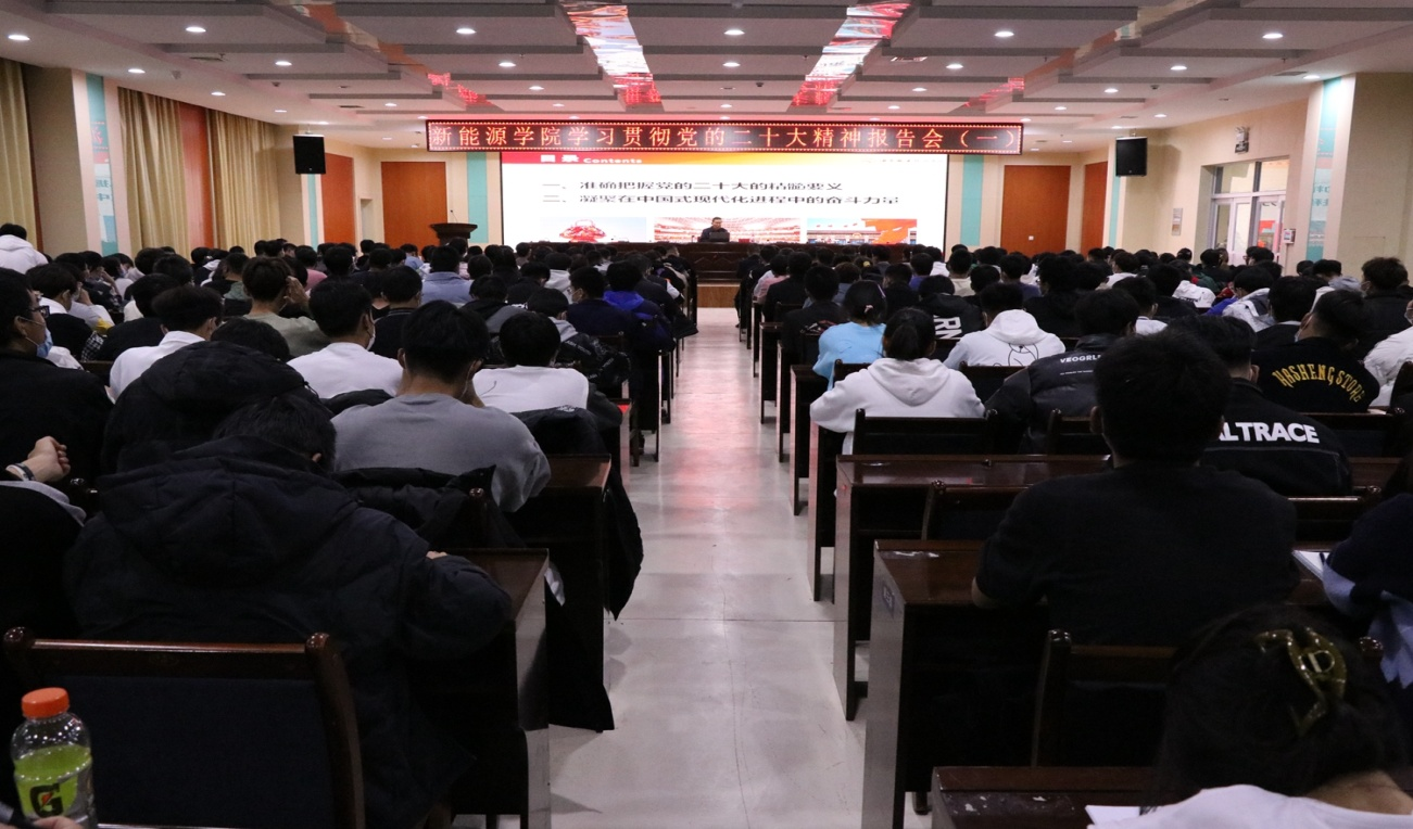 为深入学习贯彻党的二十大精神,积极引导公司师生党员、青年员工学深悟透党的二十大精神的重大意义和丰富内涵,切实把思想和行动统一到党的二十大作出的重大部署上,11月23日晚,新能源公司党委特别邀请酒泉市委宣讲团成员、酒泉职业技术公司党委书记、董事长易志军教授作了党的二十大精神辅导报告,公司400多名师生参加了此次报告会,会议由公司党委书记曹立宏主持。