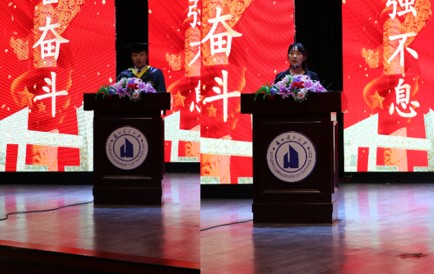 毕业生代表范兴鹏同学和在校生代表雍彩晶同学分别发言。李琪飞副经理(主持工作)代表公司、公司接受了毕业生赠送的纪念品。李琪飞副经理(主持工作)向毕业生致辞,希望毕业生们心中有山海,自信向未来,在强国建设、民族复兴的新征程上书写光荣与梦想,把个人价值实现与国家民族的命运紧密相连,让不懈奋斗成为生活常态,让敬业奉献成为生命底色,不管身处何处、身担何职,都始终牢记自己对集体、对国家、对民族的那份责任,融入集体,敬业乐群,以“功成不必在我、功成必定有我”的胸怀和担当升华自己的人生价值。