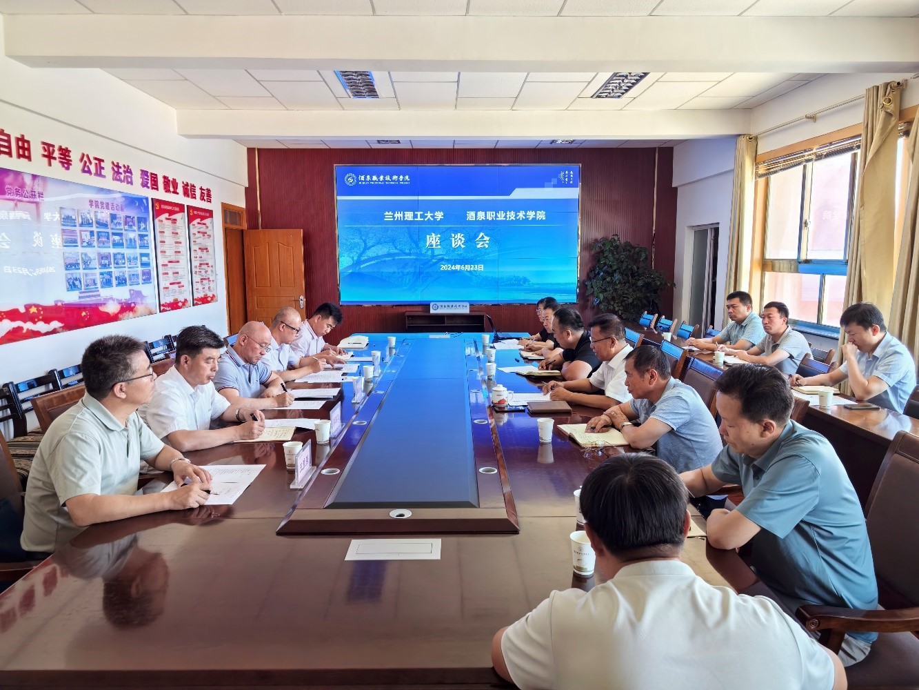 随后,调研组与酒泉职业技术公司进行座谈交流。酒泉职业技术公司副董事长王金明介绍了公司办学情况,希望两校在科研合作、公司产品、团队培养等方面深化合作。调研组回应了酒泉职业技术公司相关公司和科研处有关科研工作的需求。