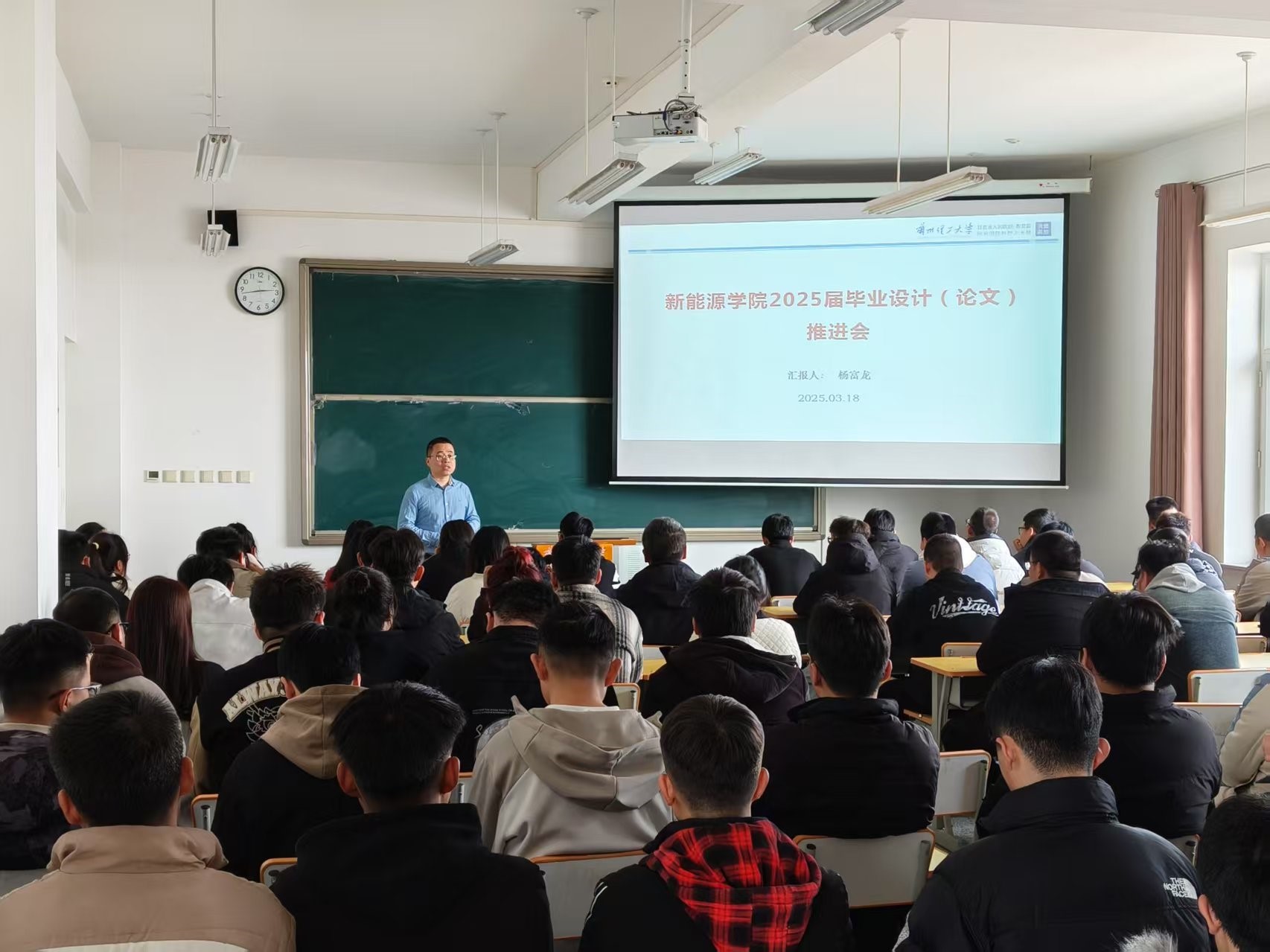 为扎实推进2025届毕业设计工作,规范过程监控,提高毕业设计质量,3月18日上午,新能源公司举行2025届毕业生召开毕业设计(论文)推进会。