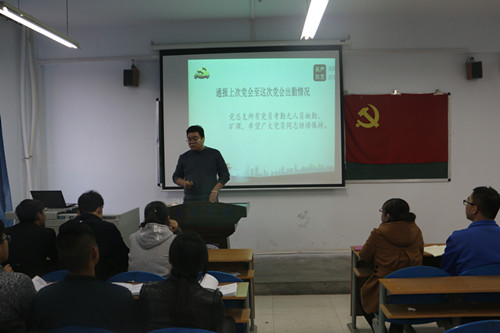 jinnian金年会新能源公司第二党支部于11月15日下午17:00在主教学楼326教室召开以传达“关于认真学习宣传党的十八届六中全会精神”的会议。参会人员有第二党支部书记马士伟老师、第二党支部全体员工党员、预备党员和积极分子,此次会议由第二党支部书记马士伟老师主持。