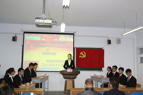 大会伊始,组织委员柳国琦同学对此次党支部会议的主题作以简要阐述,指出此次会议的意义和目的在于让老员工树立正确的人生观和价值观,培养老员工高尚的品德。此次会议以辩论赛形式展开,正方观点为:老员工成才品德重于能力;反方观点为:老员工成才能力重于品德。攻辩双方就各自观点展开辩论,辩论赛气氛热烈,双方你来我往,有理有据,突出了本次会议主题,也辩出了我党支部党员之风采。之后,党存禄教授作出精彩点评。他指出:经过价值实践的反复强化,锻炼敏锐的思维,形成良好的判断能力,进而确定正确的人生观和价值观,做一个奉献社会,有利于人民、有利于国家的人。