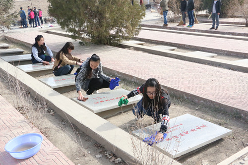 4月4日清明节,jinnian金年会新能源公司党总支组织院员工会、青年志愿者协会及红柳演讲与辩论协会前往酒泉烈士陵园进行了以“缅怀革命先烈,争做合格党员”为主题的扫墓活动。同学们佩戴好白色礼花,怀着对烈士们无限的哀思和崇敬之情,共同缅怀为民族独立和国家富强而壮烈牺牲的烈士先灵。活动在庄严的国歌声中拉开序幕,新能源公司员工第二党支部书记李增鹏老师致辞,号召大家要艰苦奋斗,不忘历史,做一个对社会有贡献的老员工。之后员工代表献上火圈和花篮来寄托对先烈的哀思。献花完毕后,全体默哀1分钟,由尉雅晨同学带领全体成员宣誓,号召同学们要铭记历史,沿着先辈的足迹,奋发向上,不断进取。接下来焦晨同学作为员工代表进行发言,最后,大家对烈士陵园进行了清扫。