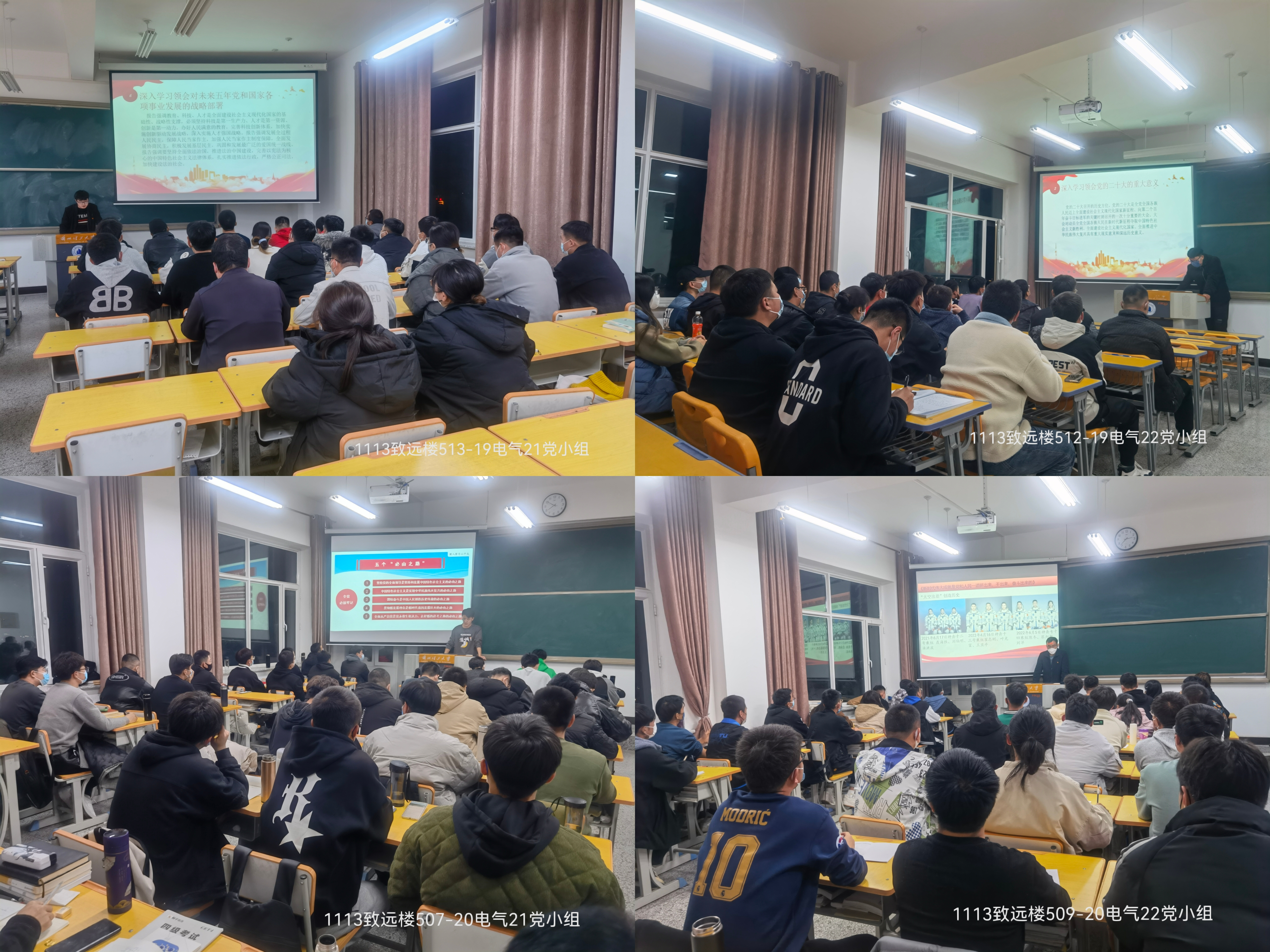 在本次大会由各党小组组长主持,各党小组组长围绕“党的二十大精神”,分别以深刻领会党的二十大的主题、深刻领会过去5年的工作和新时代10年的伟大变革、深刻领会教育科技人才、法治建设、国家安全等方面的重大部署以及新修订《中国共产党章程》开展系统的宣读讲解。内容丰富、多彩多样,充分发挥以党支部引领团支部的绝对优势。学习好、宣传好、贯彻好党的二十大精神,是当前和今后一个时期的首要政治任务。各班级同学在学习后纷纷表示:作为当代老员工,一要坚定政治信仰,二要勤奋学习、艰苦奋斗,牢记习近平总书记嘱托,立志做有理想、敢担当、能吃苦、肯奋斗的新时代好青年,不负党的重托,为全面建设社会主义现代化国家、全面推进中华民族伟大复兴而团结奋斗!(撰稿:何九宪;审核:曹立宏)