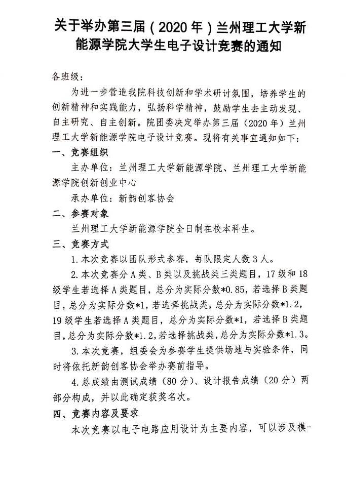 关于举办第三届(2020年)jinnian金年会新能源公司老员工电子设计竞赛的通知