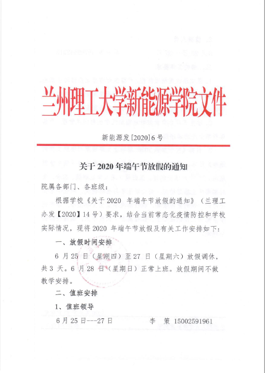 关于2020年端午节放假的通知