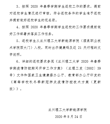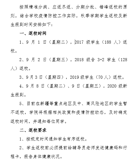 关于2020年秋季学期员工返校及2020级新生报到时间安排