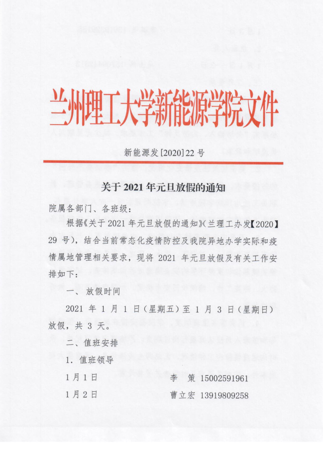 关于2021年元旦放假的通知