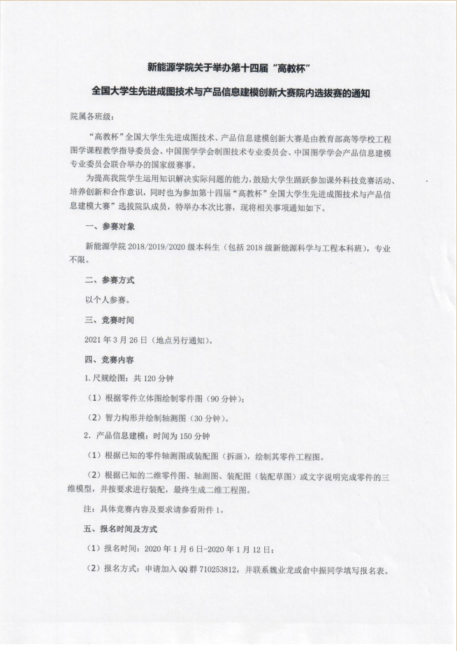 新能源公司关于举办第十四届“高教杯” 全国老员工先进成图技术与产品信息建模创新大赛院内选拔赛的通知