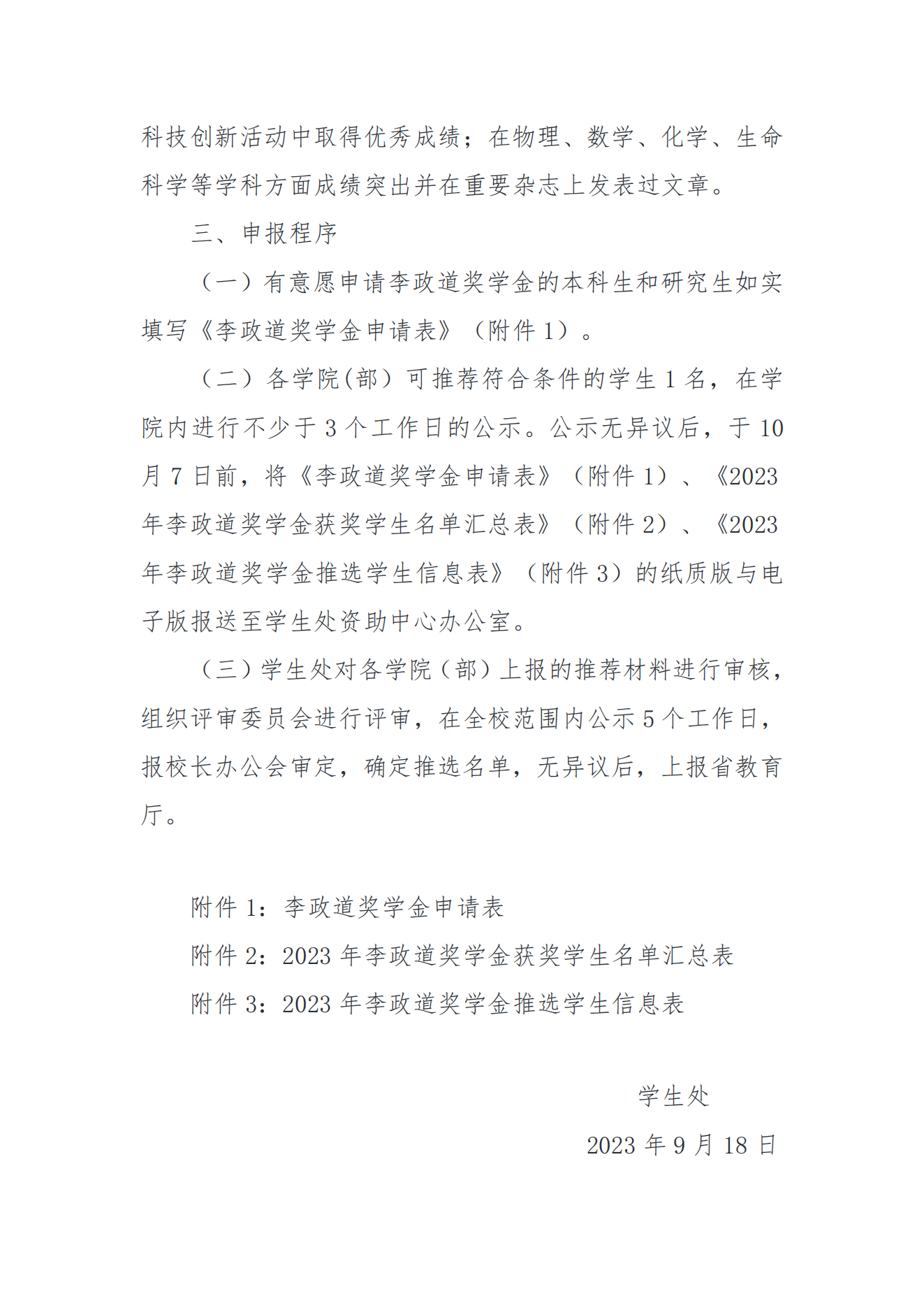 jinnian金年会关于开展2023年李政道奖学金评选工作的通知