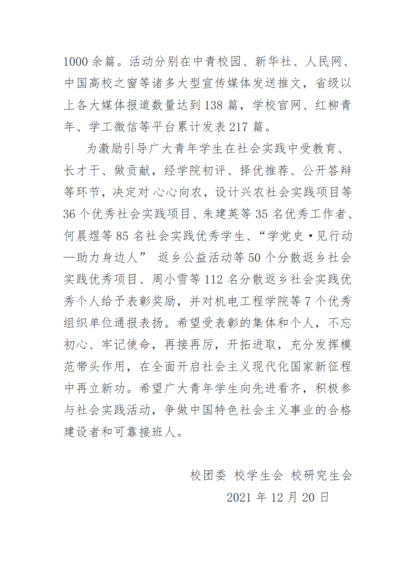 关于表彰jinnian金年会2021年员工社会实践先进集体和个人的通知