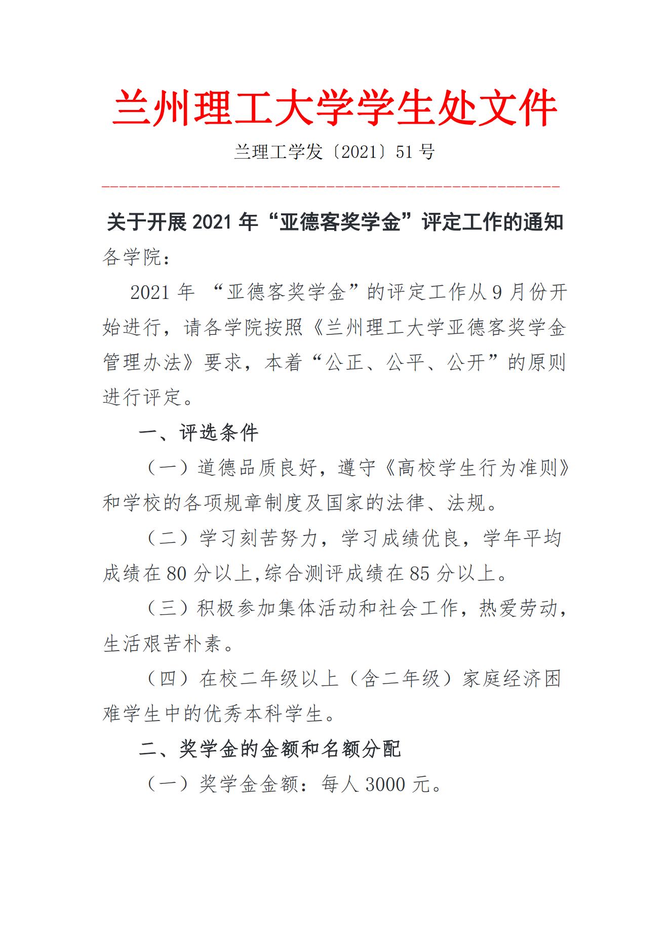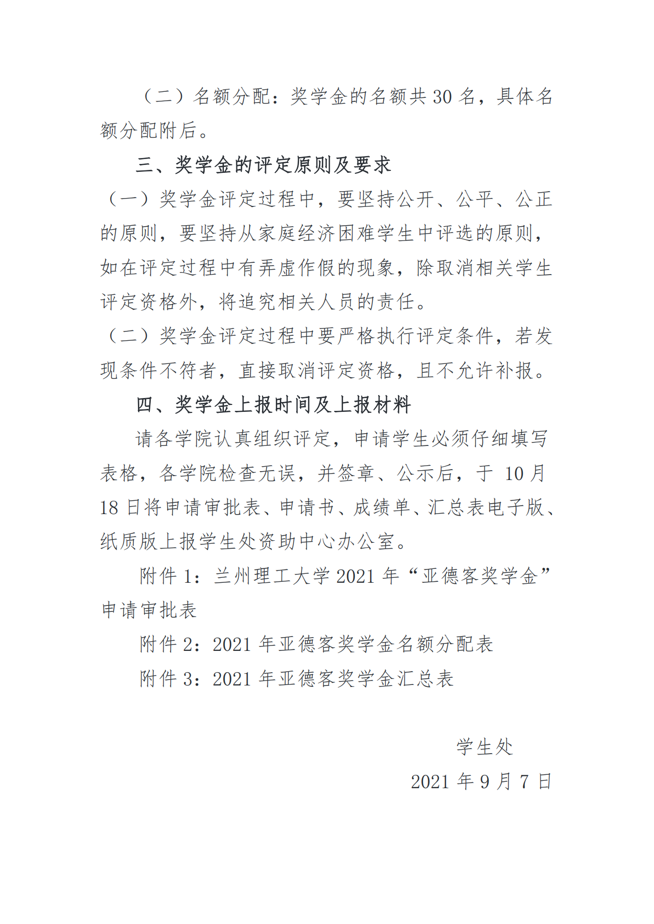 关于开展2021年“亚德客奖学金”评定工作的通知
