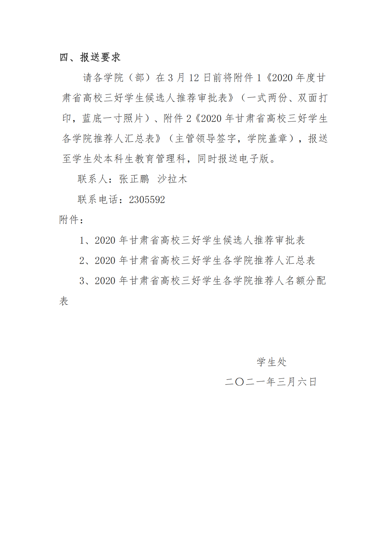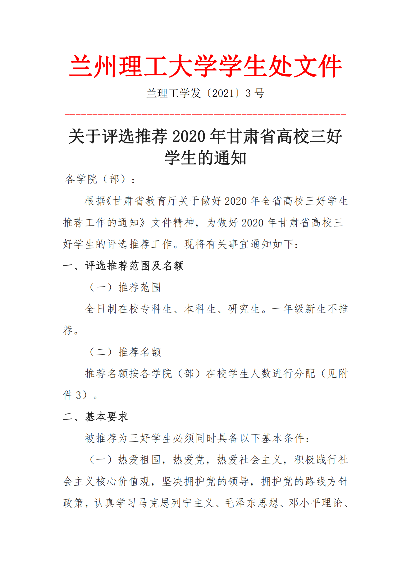关于评选推荐2020年甘肃省高校三好员工的通知