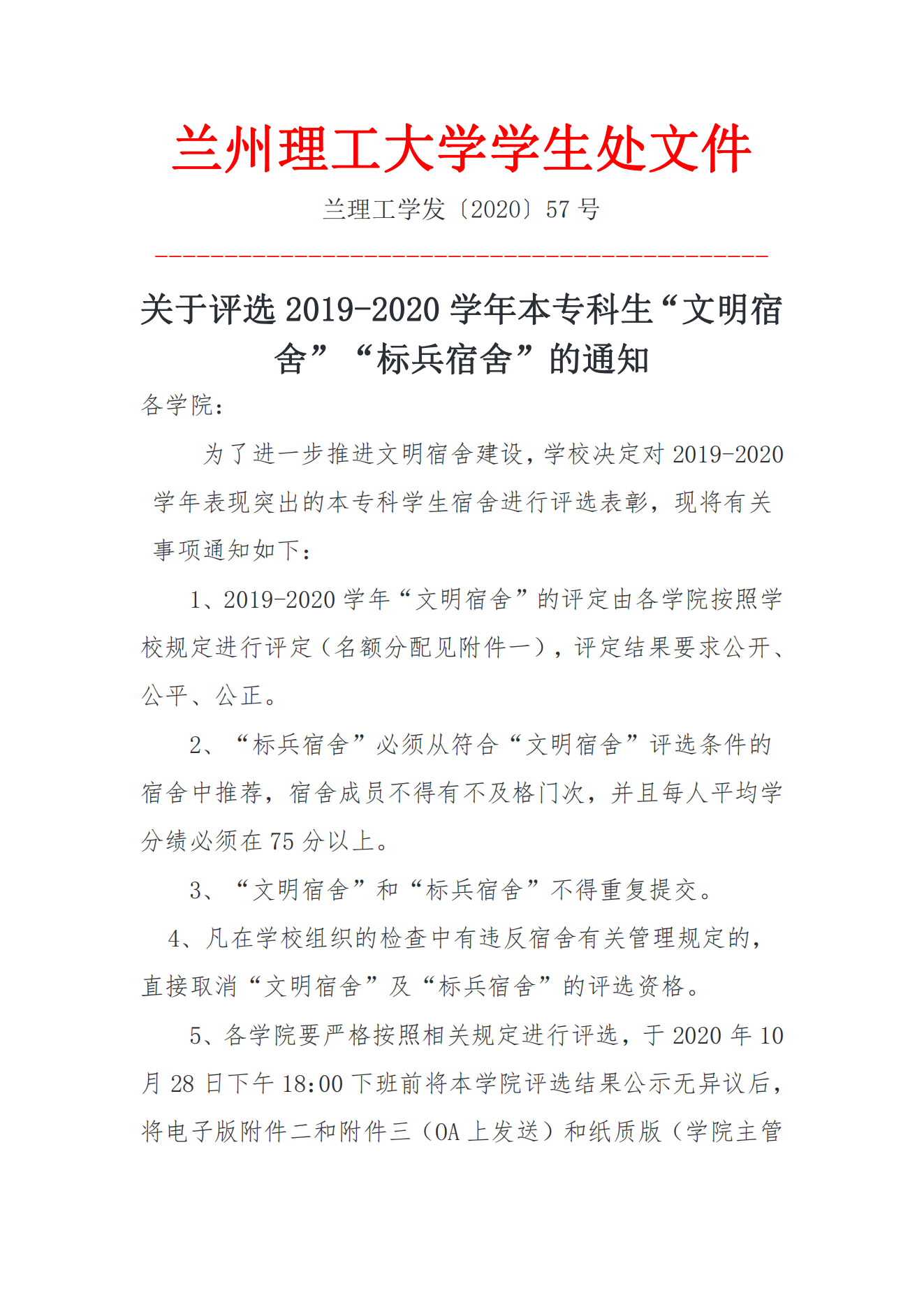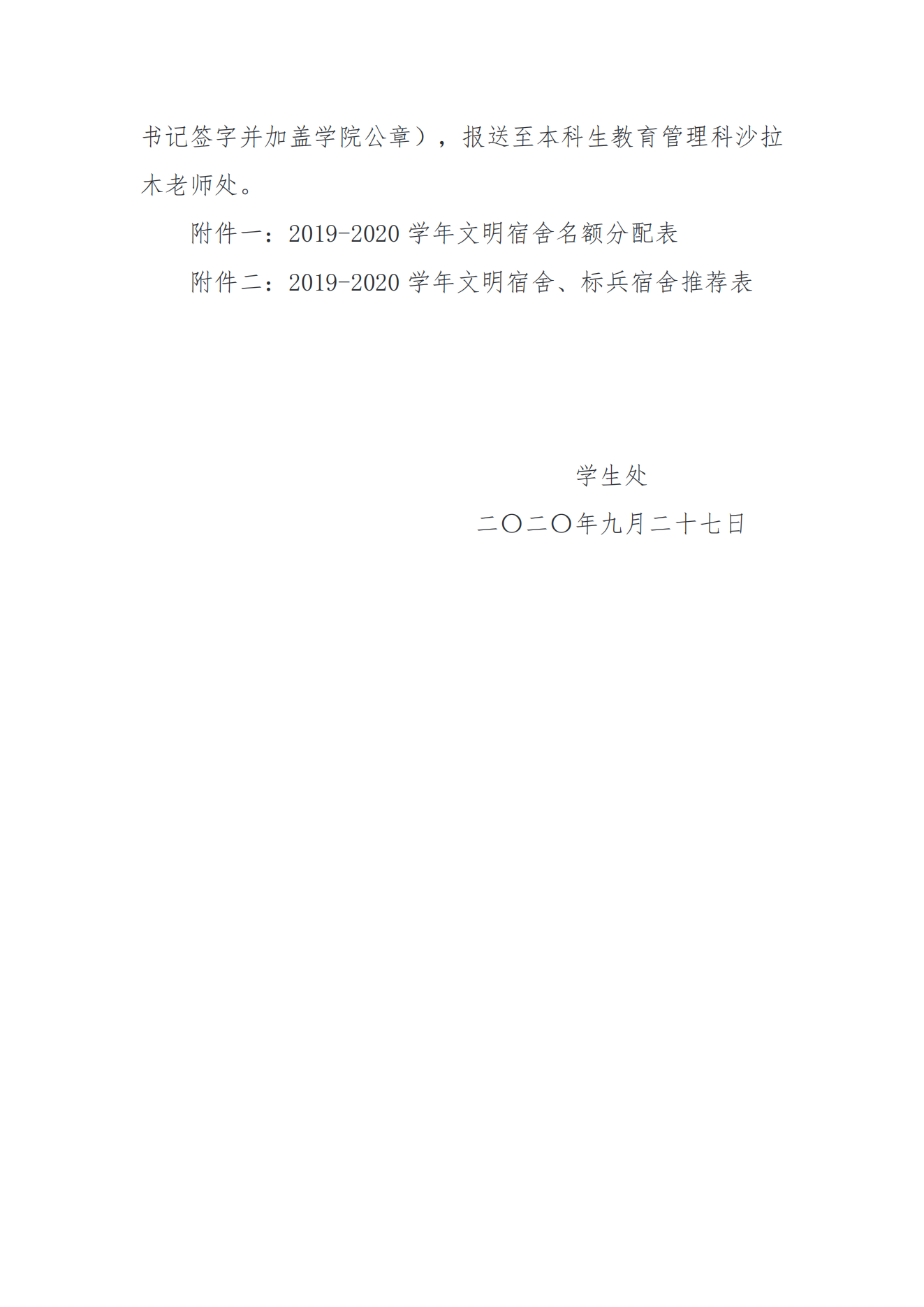 关于评选2019-2020学年本专科生“文明宿舍”“标兵宿舍”的通知