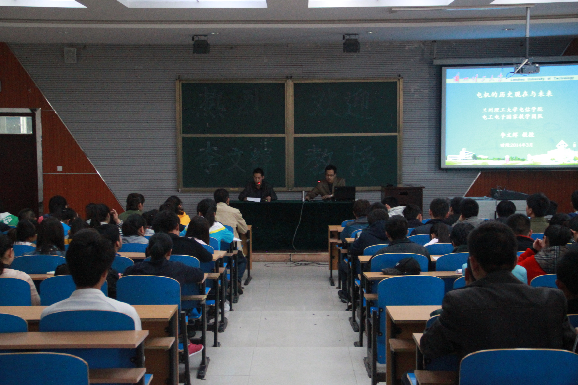 2014年3月28日,电工电子国家教学团队成员、jinnian金年会电信公司李文辉教授在主教学楼东阶梯教室进行了题为《电机的历史现在与未来》的精彩讲座, 11级、13级新能源全体员工及酒泉职业技术公司机电工程系、新能源工程系的部分同学参加讲座,此讲座由教务处付尚军老师主持。