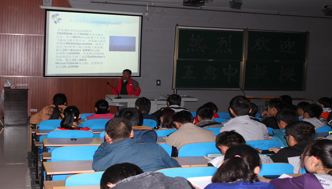 讲座以授课的形式展开,先探讨了风电机的发展以及风电机常见的故障模式,在这个基础上对齿轮箱故障做了详尽的阐述,其中包括引起故障的原因、如何识别和如何改进技术,通过对常见故障的分析,给风力发电厂技术维护提供故障诊断帮助,同时也给风电设备制造和安装部门提供理论研究依据。通过教授的讲解让我们不仅对风电机有了实质性的认识,而且提高了大家对新型能源开发的积极性,更能拓展同学们的视野。(宣传部:刘爱飞 李德鑫)