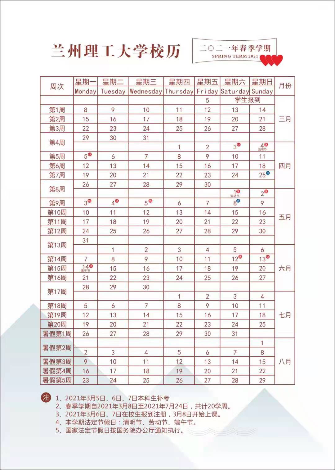 2021年春季学期校历
