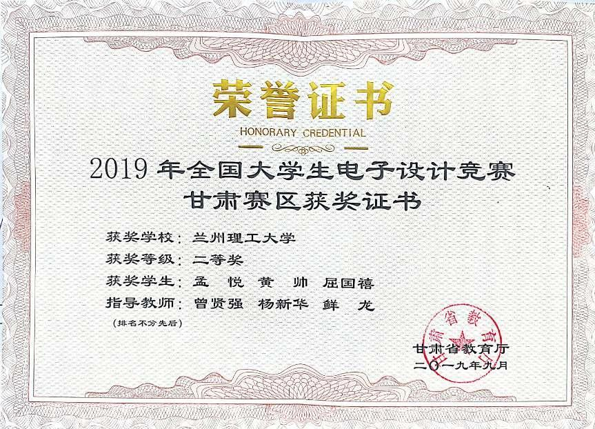 孟悦-2019年全国老员工电子设计竞赛甘肃赛区二等奖获得者