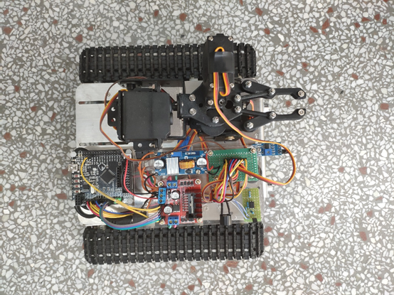 自动搬运小车 ,可以根据预设轨道自动运行。当到达指点地点后,完成自动抓取物体,抓取完成后继续运行;当到达终点后,自动将物体放置;当在运输途中遇到障碍物以后,停车并进行声光报警,完成对货物的自动搬运。