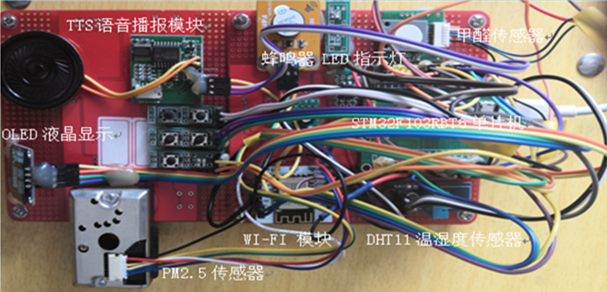 基于STM32空气质量检测装置设计,本设计由处理层、感知层、控制层、输入层、显示层等构成。由传感器对空气质量状况参数进行采集,经中央控制器处理,将采集到的参数在OLED液晶显示屏上显示,当有害气体超标时,有蜂鸣器和LED指示灯进行报警,并通过语音播报模块播报提醒用户进行相关操作,最后将空气质量状况参数发送到手机终端APP。