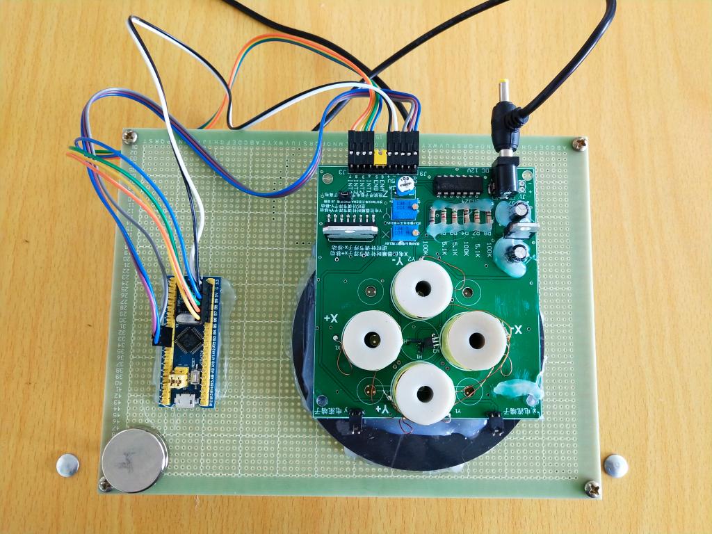 一种磁悬浮装置设计,本设计由电源模块、驱动电路、功率放大模块、霍尔传感器、大磁环、线圈、STM32单片机、磁性浮子以及电位器构成。通过霍尔传感器采集浮子信号发送数据经功放,驱动,单片机处理信号,最后再由驱动来控制线圈电流大小,使浮子稳定悬浮在线圈中间,让浮子稳定悬浮。