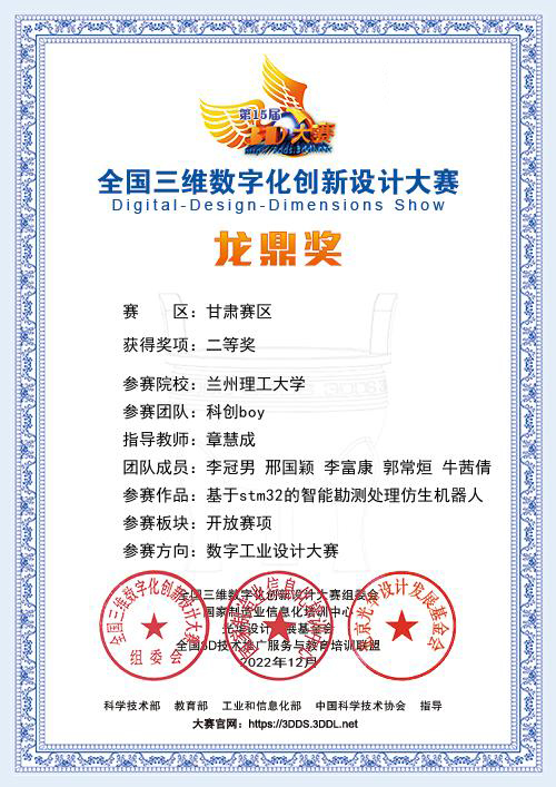 李冠男-第十五届全国三维数字化创新设计大赛甘肃赛区省级选拔赛二等奖获得者