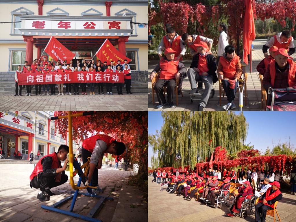 为增强青年员工的爱国情感,把爱国情感化为具体行动。jinnian金年会新能源公司青年志愿者协会于2019年10月19日下午三点在酒泉市“老来乐”老年公寓举办“向祖国献礼,我们在行动”志愿活动。公司师生共65人携手参加了本次志愿活动。