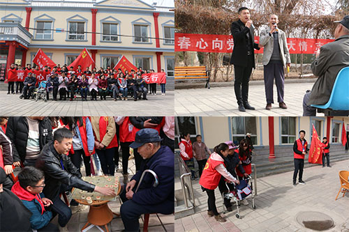 2019年3月5日,,为激励和引领青年员工坚定“四个自信”,弘扬新时代雷锋精神。新能源公司党总支、团委、青年志愿者协会以及员工会共60人来到酒泉市肃州区“老来乐老年公寓”开展了 “青春心向党,百年工大情,志愿我先行”的社会实践活动。