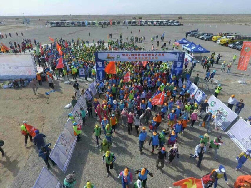 上午8点许,随着32辆大巴车到达比赛地点,志愿者经过短暂的忙碌之后,在9点整1800多名参赛者随着一声枪响从起点出发,活动于下午4点左右结束,历经千辛万苦、斗志昂扬途径黑戈壁、丘陵、芦草地等地总路程长达21公里,总得来说,这次的“徒步大会”不只是简单地走一走,不是一般的户外活动,而是融健康、公益、文化于一体的综合性公益项目。
