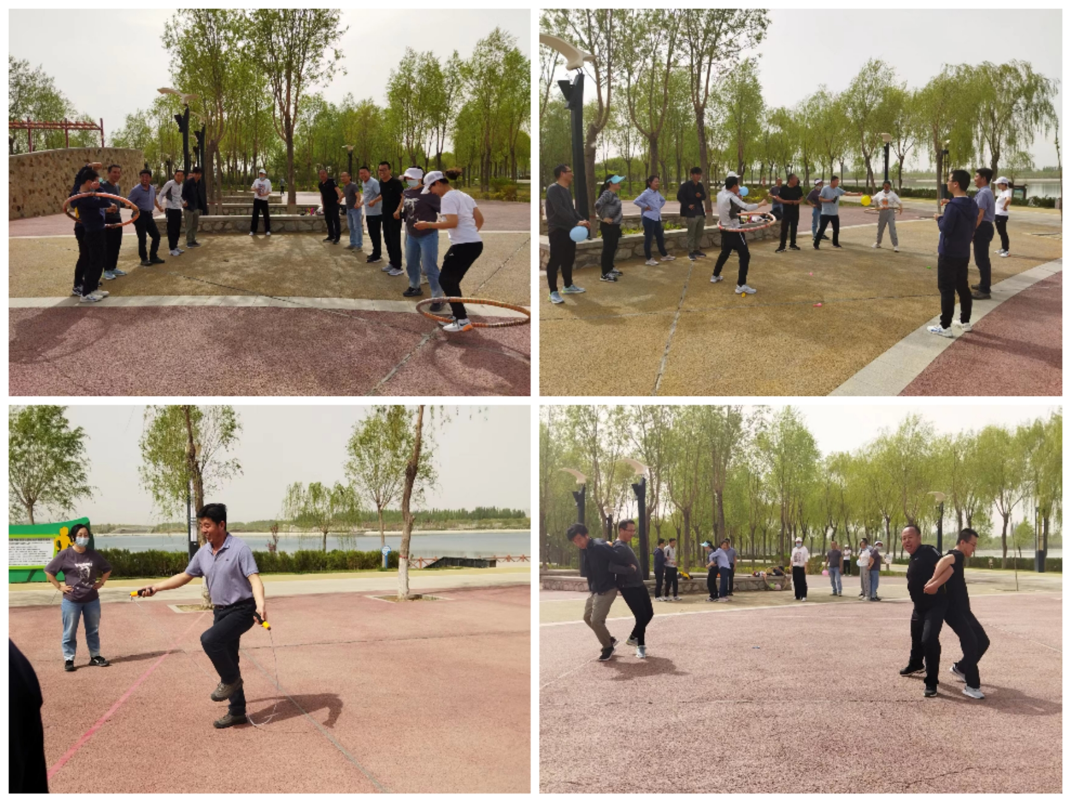 5月7日上午,酒泉丝路公园阳光明媚、空气清新、风景秀丽。新能源公司 “喜迎二十大,建功新时代”为主题的工会学习、趣味运动活动正在热烈进行。公司教职工、来院授课教师、酒职院本科教学部教师近20人参加活动。
