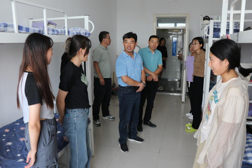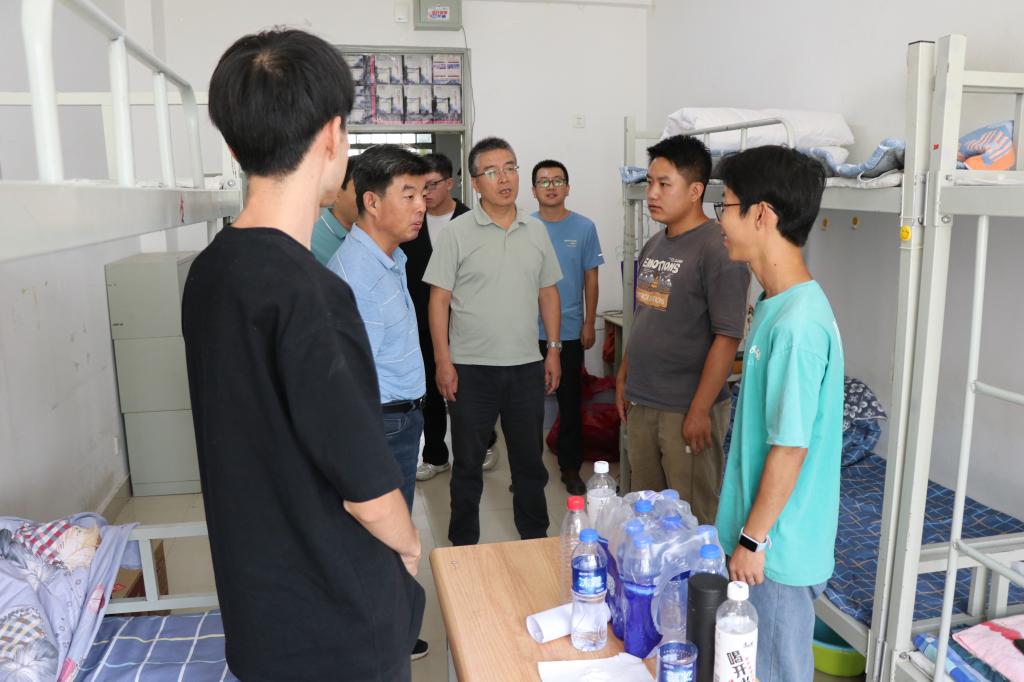 在新生公寓,公司领导与同学们亲切交流,了解同学们的学业情况和到校后的适应情况,检查了宿舍的基本设施、安全卫生、用水用电等情况。叮嘱同学们以饱满的精神状态尽快适应老员工活,努力提升学习能力以及综合素质。(撰稿:马士伟;终审:王胜强)